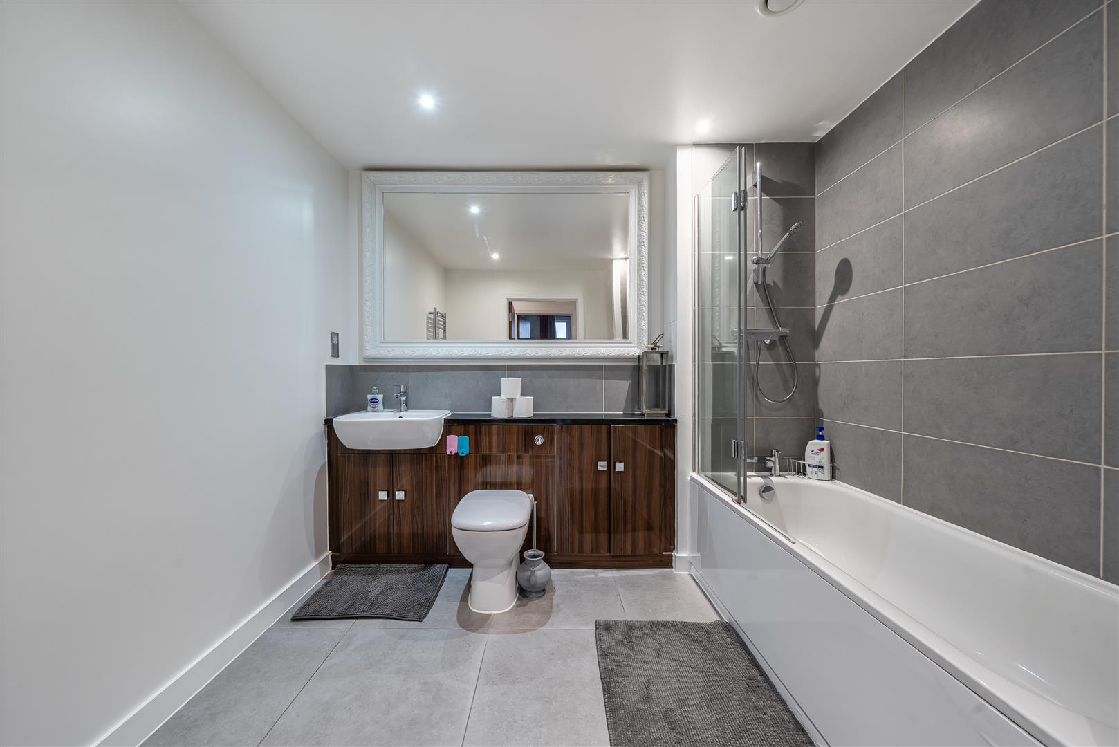Family bathroom complete with bath and integrated shower